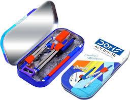 The DOMS Accumate Geometry Box is a complete and reliable set for students and exam takers. It includes 1 compass, 1 divider, 1 mechanical pencil, 1 sharpener, 1 eraser, 1 protractor (180°), 1 scale (15cm), and two set squares (45° & 60°).