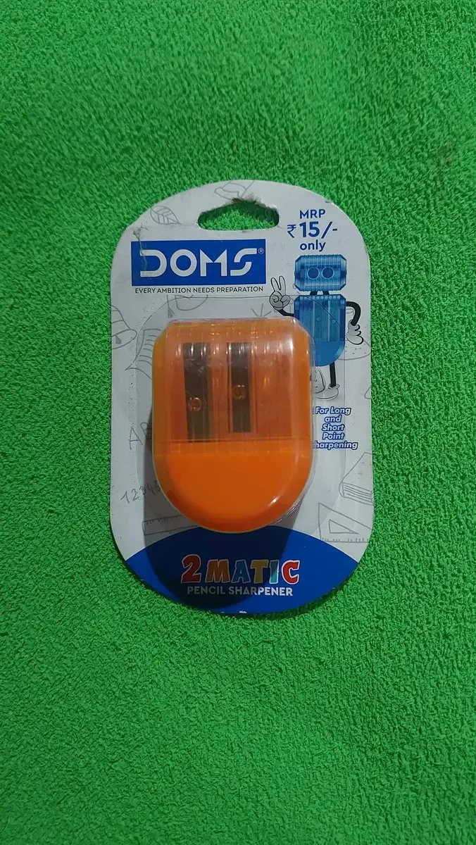 DOMS sharpeners are designed for smooth and precise pencil sharpening, featuring a scientifically angled, anti-rust blade that creates a fine tip without breakage. They are available in various styles, often made from durable plastic, with compact and ergonomic designs, making them suitable for students, artists, and professionals