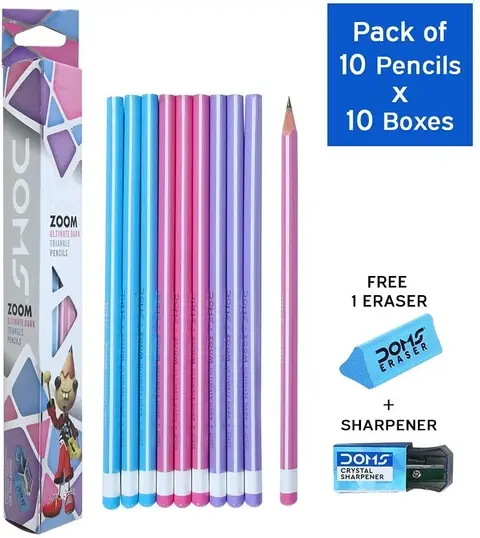 The Doms Neo Star Pencil is a graphite pencil known for its "super dark" lead, ergonomic hexagonal shape for a comfortable grip, and vibrant, neon-colored barrels. These pencils are designed for students and artists, offering a smooth writing and drawing experience with a break-resistant graphite core. They are ideal for writing, school, office use, and exams.